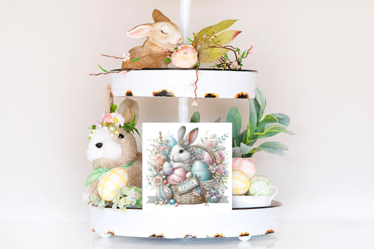Easter Sign, Pastel Easter Bunny Basket Hanging Wall Mini Sign Wood Home Decor, Door Hanger, Wreath Sign
