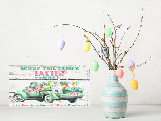 Easter Sign, Bunny Tail Farms Egg Hunt, Hanging Wall Sign Wood Home Decor, Wreath Sign, Door Hanger