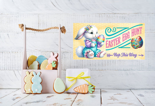 Easter Sign, Egg Hunt Hop this Way, Hanging Wall Sign Wood Home Decor, Wreath Sign, Door Hanger