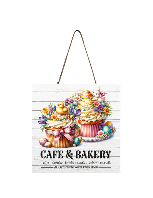 Easter Sign, Easter Bakery Cupcakes, Hanging Wall Sign Wood Home Decor, Wreath Sign, Door Hanger
