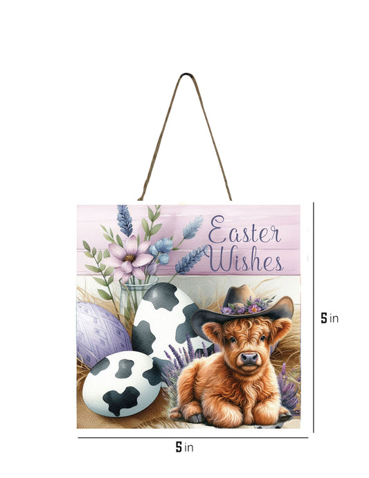 Easter Sign, Western Highland Easter Wishes Hanging Wall Mini Sign Wood Home Decor, Door Hanger, Wreath Sign