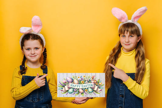 Easter Sign, Happy Easter Banner, Hanging Wall Sign Wood Home Decor, Wreath Sign, Door Hanger