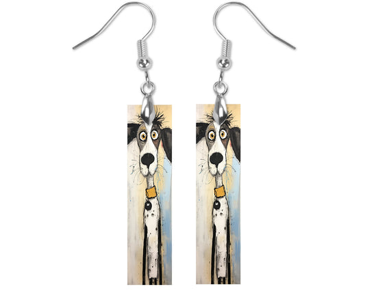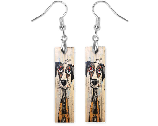 Ally Muttley Dog Earrings, Printed Wood Dangle Earrings Hypoallergenic Jewelry Handmade