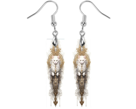 Rococo Cat Earrings, Printed Wood Dangle Earrings Hypoallergenic Jewelry Handmade