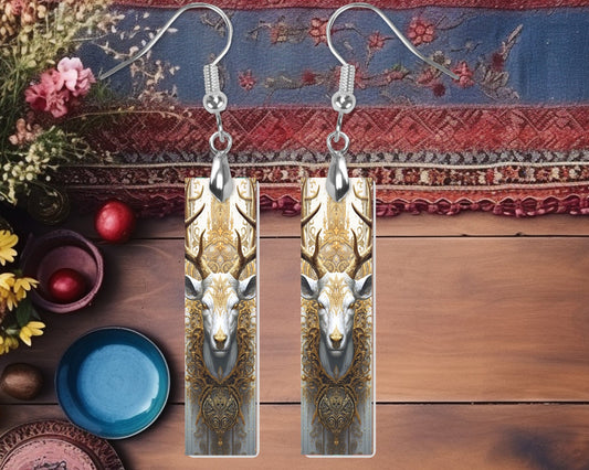 Rococo Deer Earrings, Printed Wood Dangle Earrings Hypoallergenic Jewelry Handmade