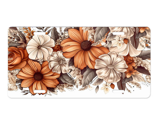 New Release, Brown and Cream Floral Aluminum Front License Plate, Vanity Plate, Car Accessory
