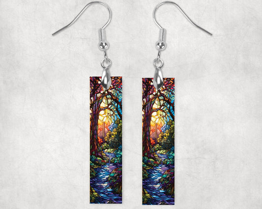 New Release, Faux Stain Glass Stream Earrings, Printed Wood Dangle Earrings Hypoallergenic Jewelry Handmade