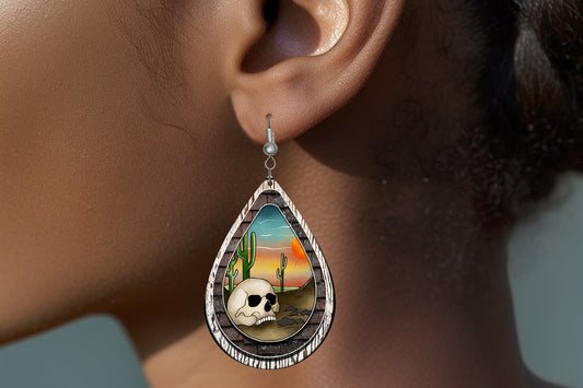 Desert Skull Earrings Print Tear Drop Wood Dangle Earrings Hypoallergenic Jewelry