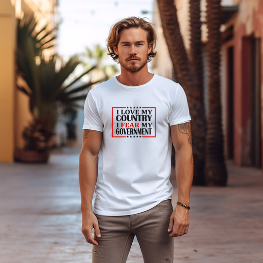 New Release, I Love My Country I Fear My Government T Shirt, Tshirt, Graphic T's 100% Cotton Black White or Gray, Tee,