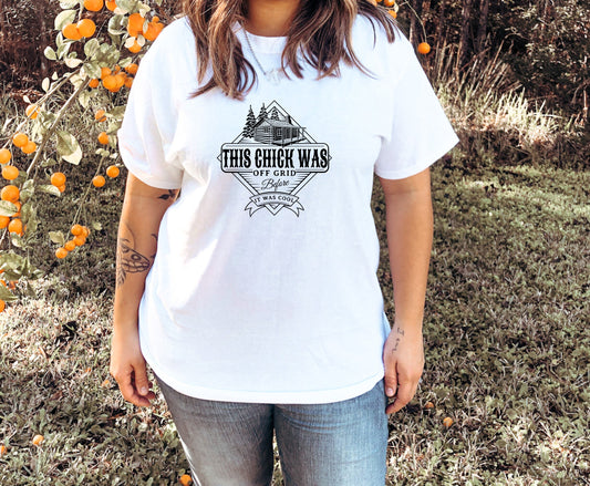 This Chick was Off Grid Before it was Cool T Shirt, Tshirt, Graphic T's 100% Cotton, White or Gray, Tee