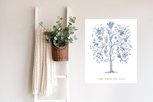 Lienzo decorativo para pared, diseño floral azul del árbol de la vida, 16 x 20