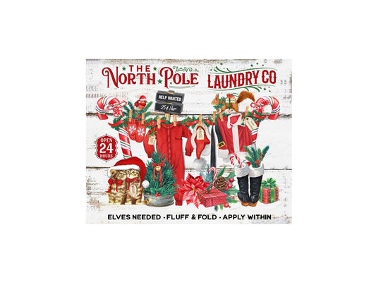 Lienzo decorativo para pared navideño de 20 x 16 North Pole Laundry Co