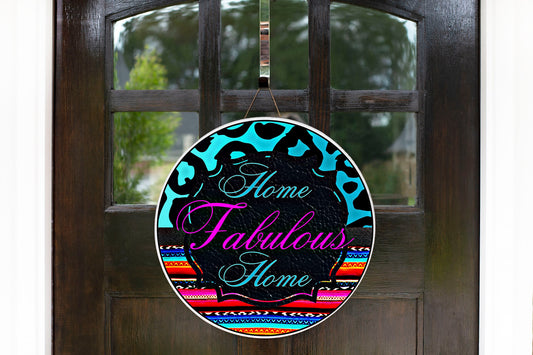 Home Fabulous Home - Letrero de madera hecho a mano con estampado redondo