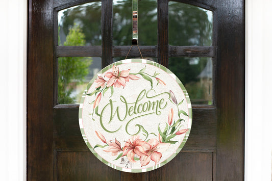 Letrero de madera hecho a mano con estampado redondo de bienvenida de Lily