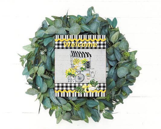 Bienvenido carrito de limón impreso cartel de madera hecho a mano