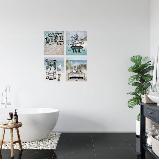 Juego de 4 impresiones divertidas en lienzo con textura blanca para pared de baño de 8x10