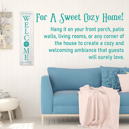 Letrero con estampado de madera vertical de bienvenida costera de Sand Dollar