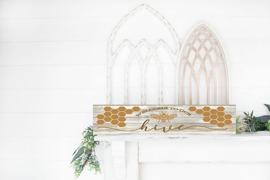 Letrero de madera hecho a mano impreso Bienvenido a nuestra colmena de 24 pulgadas