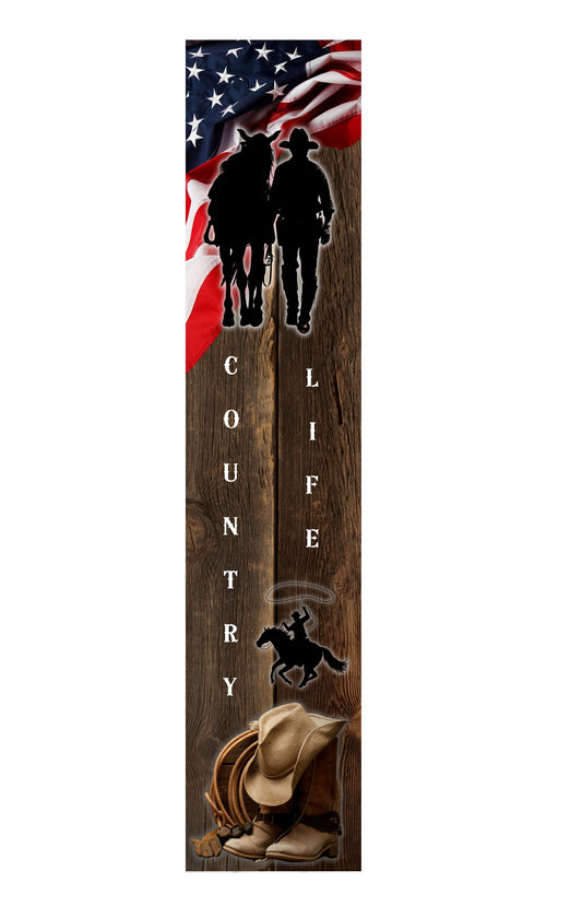 Cartel vertical con impresión de madera, 24 pulgadas (2 pies de alto), Country Life Cowboy Western