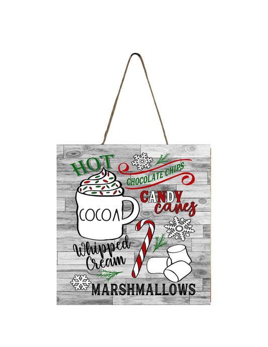 Cacao caliente con malvaviscos impreso hecho a mano adorno navideño de madera mini letrero