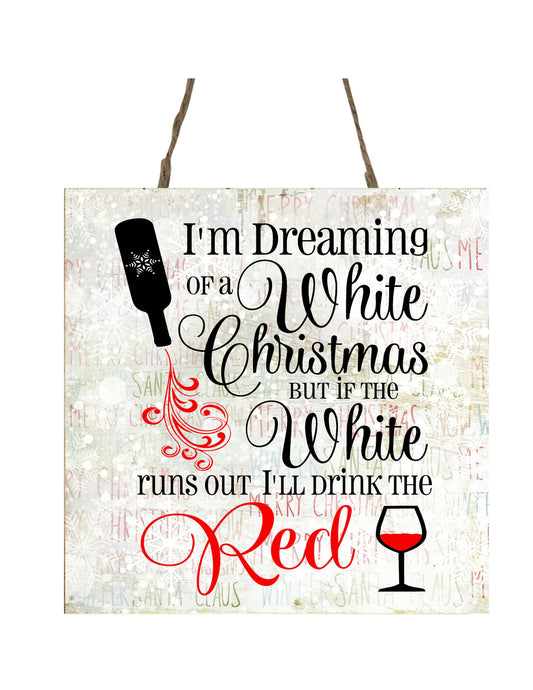 Soñando con una Navidad blanca pero beberé un mini letrero de adorno navideño de madera hecho a mano con estampado rojo