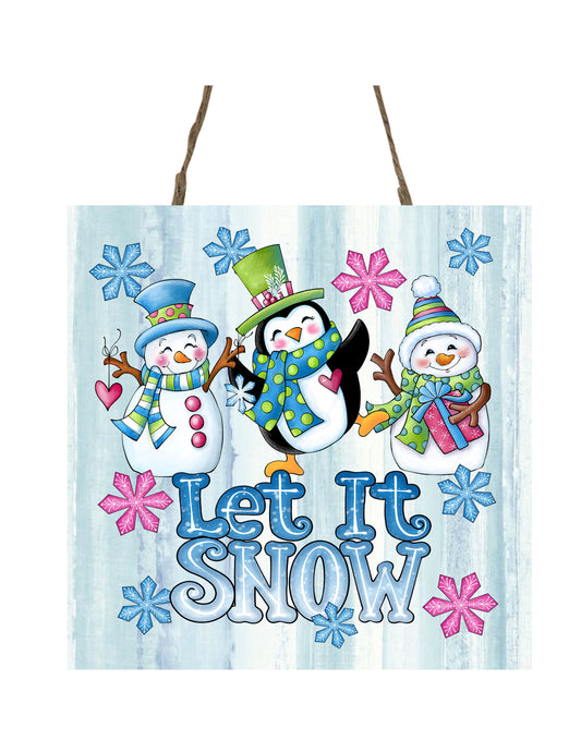 Let it Snow muñecos de nieve impresos hechos a mano adorno de Navidad de madera Mini letrero