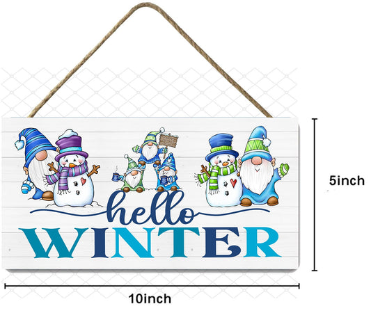 Hola gnomos de invierno impresos letrero de madera hecho a mano