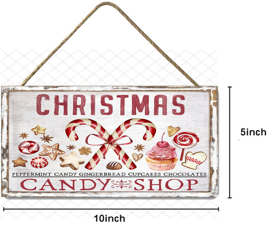 Letrero de madera hecho a mano impreso de tienda de dulces navideños