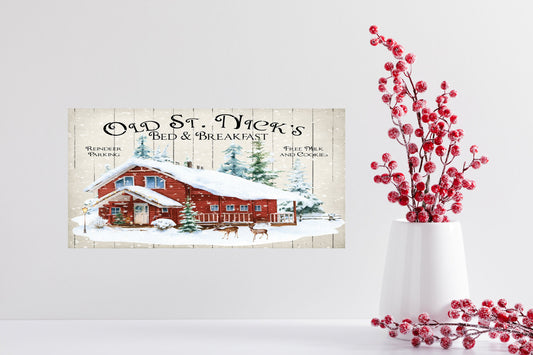 Old St. Nick Bed and Breakfast Letrero de madera hecho a mano impreso navideño