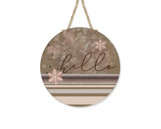 Hola invierno marrón y rosa redondo impreso hecho a mano madera signo granja puerta suspensión corona signo
