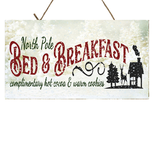 Letrero de madera hecho a mano impreso navideño B & B del Polo Norte cubierto de nieve