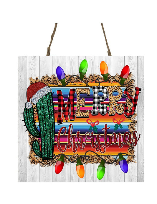 Serape Western Feliz Navidad adorno impreso hecho a mano madera mini signo
