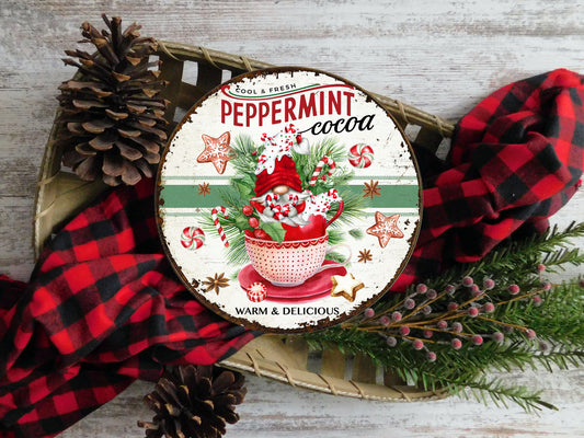 New Release Peppermint Cocoa Christmas Round Printed Handmade Wood Sign Farmhouse Door Hanger Wreath Sign
