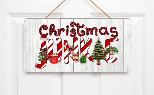 New Release Christmas Junkie Decor Printed Handmade Wood Sign, Wreath Sign, Door Hanger, Christmas Decor Wall Sign