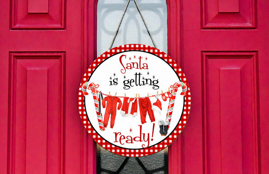 New Release Santa Getting Ready Laundry Christmas Round Printed Handmade Wood Sign Farmhouse Door Hanger Wreath Sign, Christmas Decoration