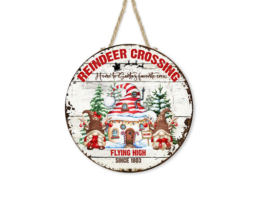 New Release Reindeer Crossing Christmas Round Printed Handmade Wood Sign Farmhouse Door Hanger Wreath Sign