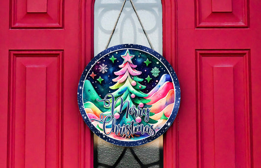 New Release Rainbow Merry Christmas Sign, Farmhouse Christmas Round Wood Sign Farmhouse Door Hanger Wreath Sign