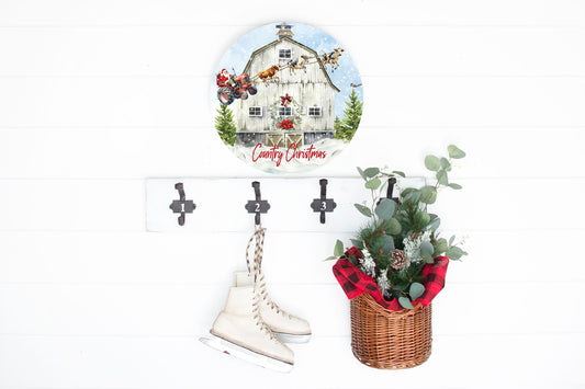New Release Farm Christmas Santa Tractor Sign, Farmhouse Christmas Round Wood Sign, Door Hanger Wreath Sign