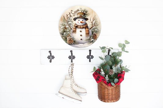 New Release Brown Snowman Let it Snow Sign, Farmhouse Christmas Round Wood Sign, Door Hanger Wreath Sign