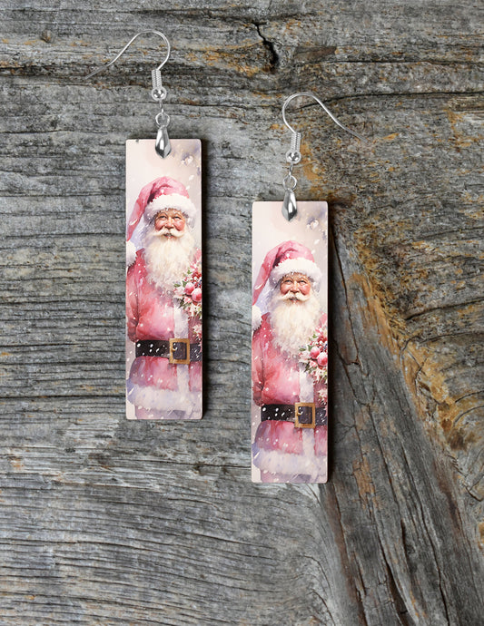 New Release Earrings, PInk Santa Christmas Bar Dangle Printed Earrings Jewelry Handmade