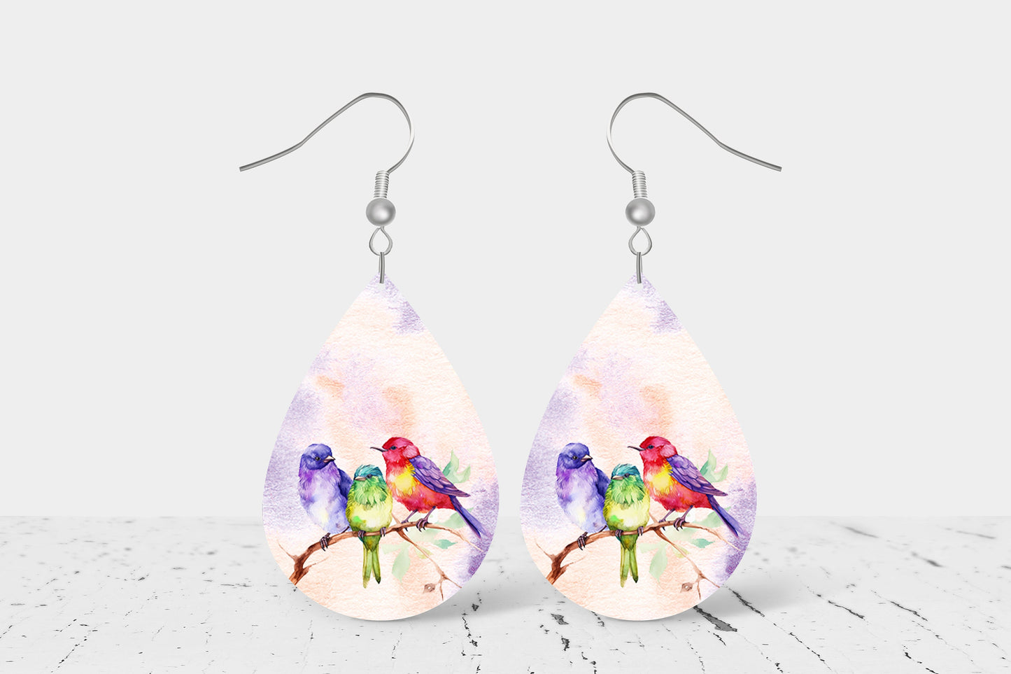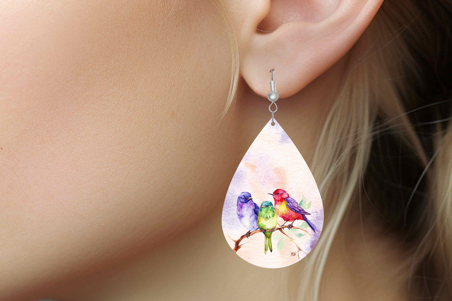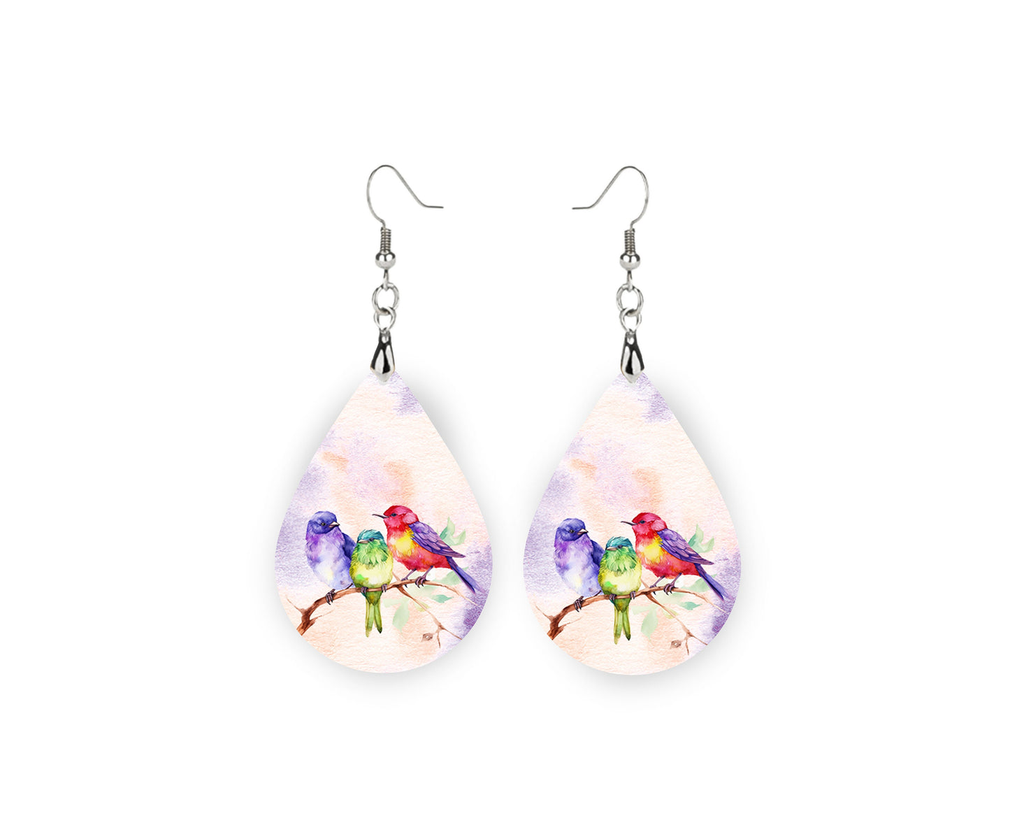 New Release Colorful Birds Print Earrings Print Tear Drop Wood Dangle Earrings Hypoallergenic Jewelry