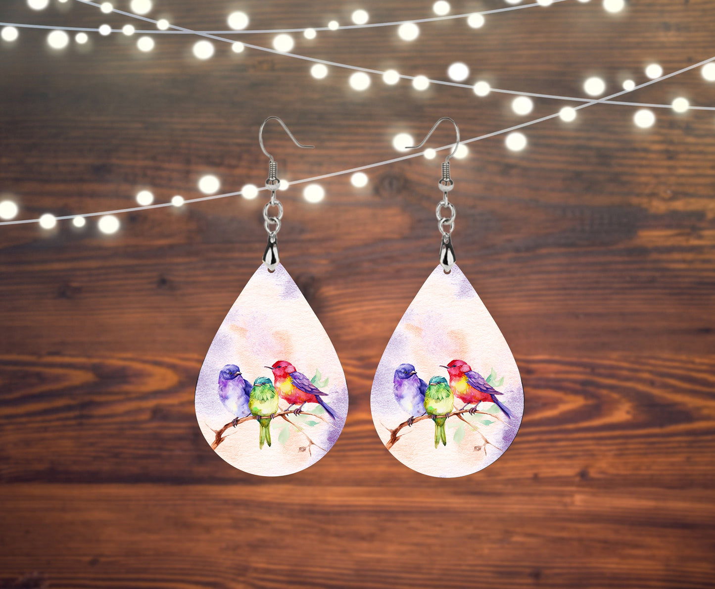 THIS IS A PRINTED IMAGE ON A WOOD EARRING. This set of tear drop earrings is created from a wood base that we have printed with a high quality digital image with our UV printer. The silver tone ear wires are hypo-allergenic. the tear drop portion of the earring is 1.5 inches long and 1 inch wide. These are light weight and comfortable to wear all day long. The backside of the earring is printed with the same design